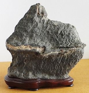 水石(すいせき)とは、自然石を鑑賞する日本独自の文化で、その石の姿に山や川、月などの景色を見出す美学です。水石の一例