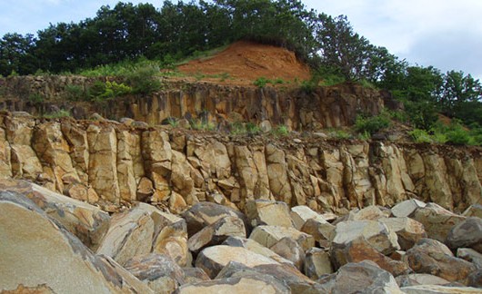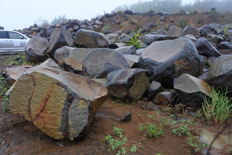 伊達冠石の岩盤は、約2000万年前に起こった火山活動によって、形成されたとされています。長い長い地球の歴史の中、マグマの冷え固まり方や海進の影響などで、丸玉石、柱状、そして鋭角的なカーブの彫刻的な形状など、実にさまざまな形の石がとれます。